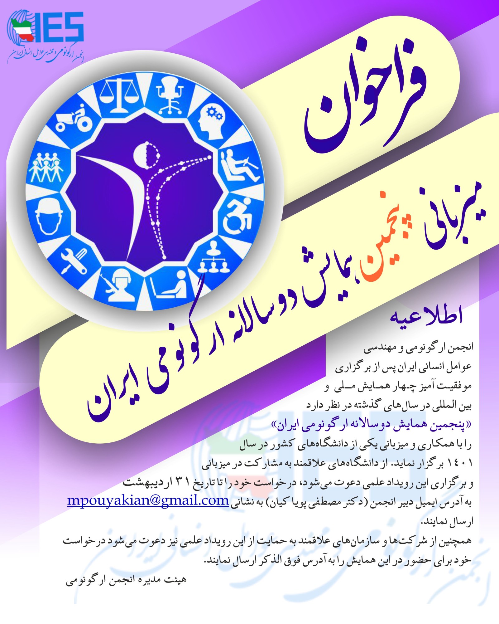 ۱۴۰۱/۲/۱۰ - فراخوان میزبانی پنجمین همایش دوسالانه ارگونومی ایران